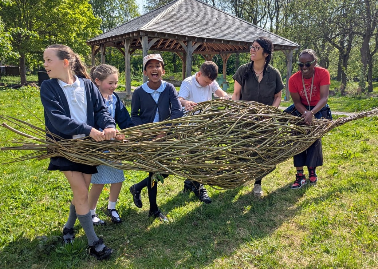 On the 29th April, the Whitworth, alongside artists Cherry Chung and Jane Doyle, welcomed Year 5 pupils from St Mary’s Primary, Levenshulme to celebrate their green willow public art installation in galleries community gardens. Both artists had been working with children at the school delivering workshops to create the piece using willow that had been growing in the school grounds.